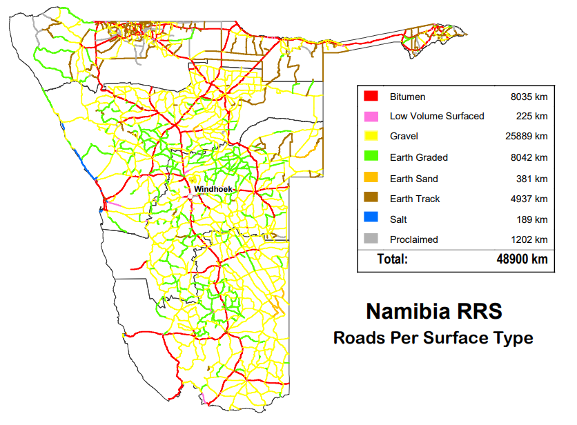 The custodian of the road network on behalf of the Government is the Roads Authority of Namibia. All proclamations and data regarding the road network are deposited in the data base of the RMS. Maps based on Network 6 for Namibia and District have been completed and distributed to all regional offices and head office personnel, including stakeholders.